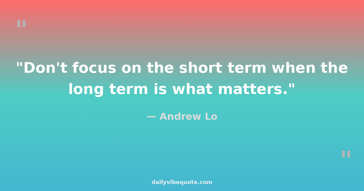 "Don't focus on the short term when the long term is what matters."