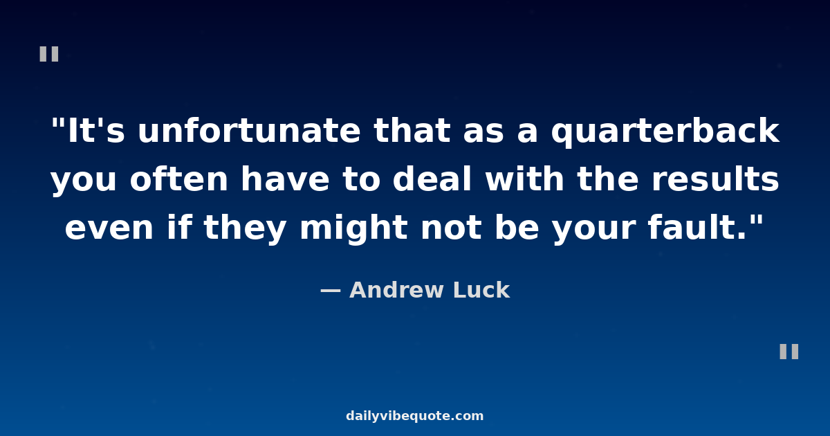 "It's unfortunate that as a quarterback you often have to deal with the results even if they might not be your fault."
