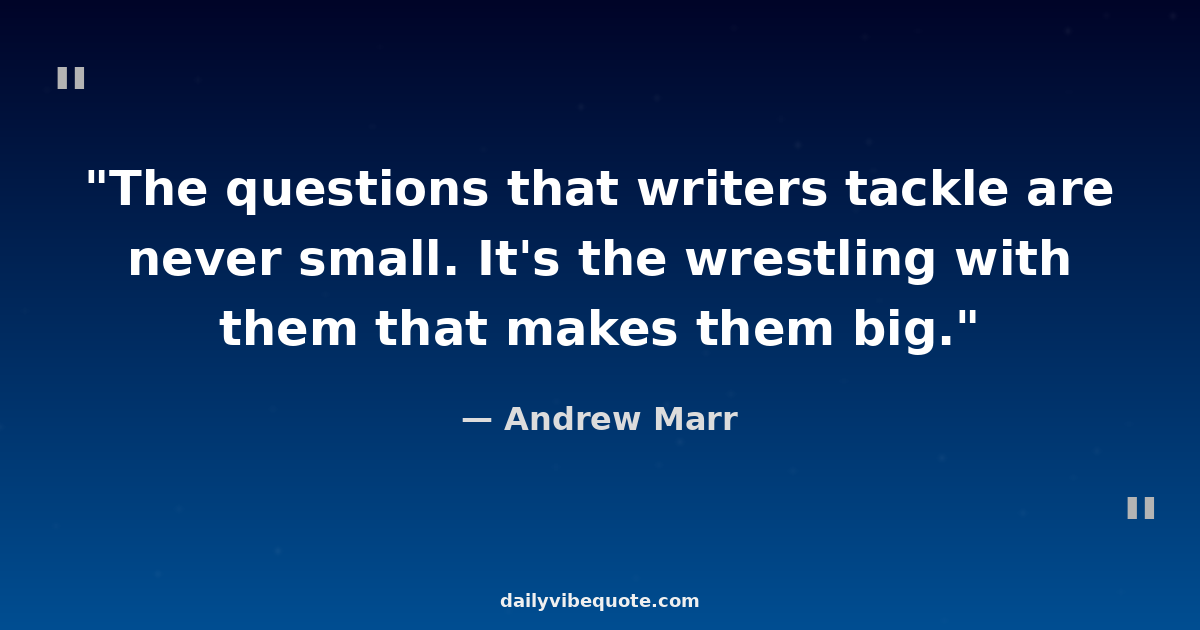"The questions that writers tackle are never small. It's the wrestling with them that makes them big."
