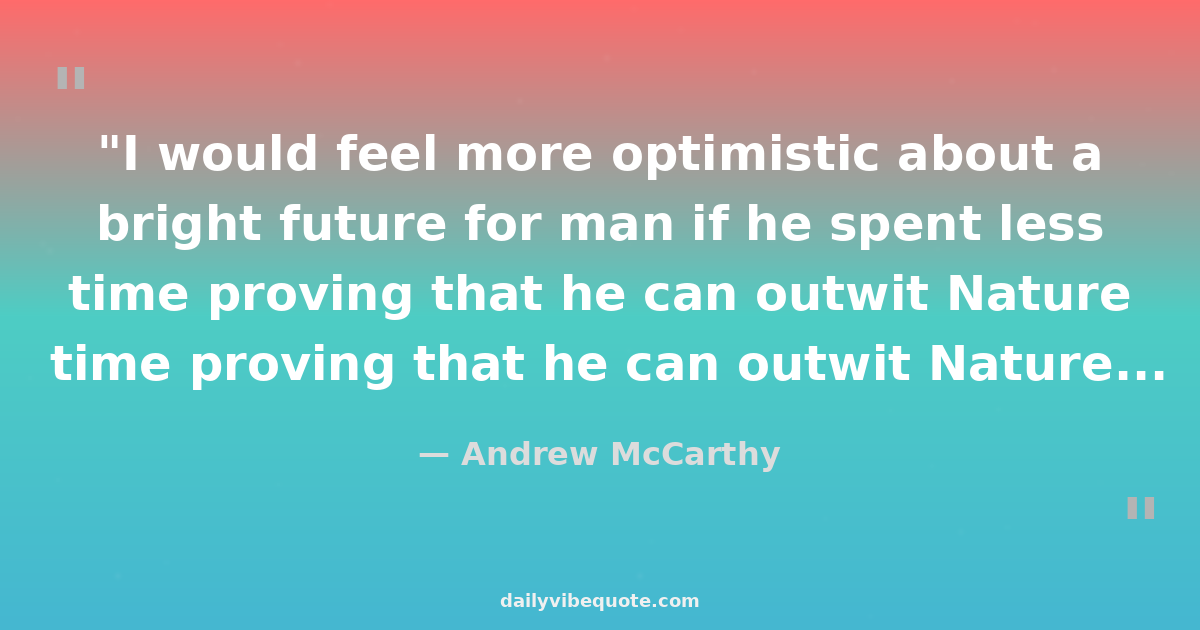 "I would feel more optimistic about a bright future for man if he spent less time proving that he can outwit Nature and more time tasting her sweetness and respecting her seniority."
