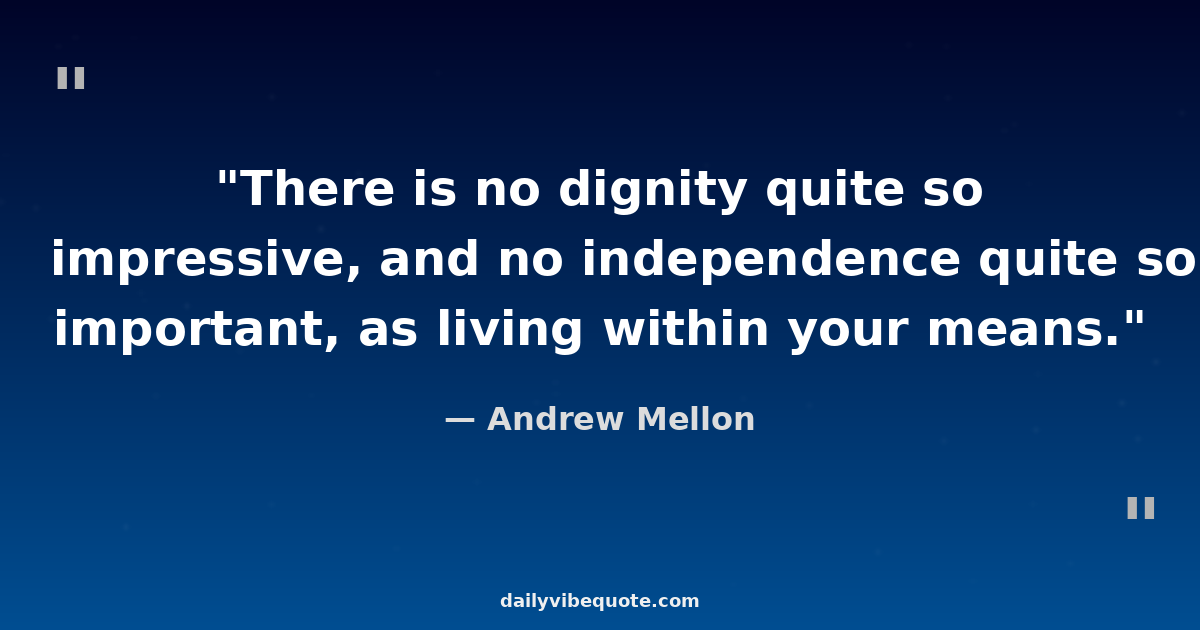 "There is no dignity quite so impressive, and no independence quite so important, as living within your means."